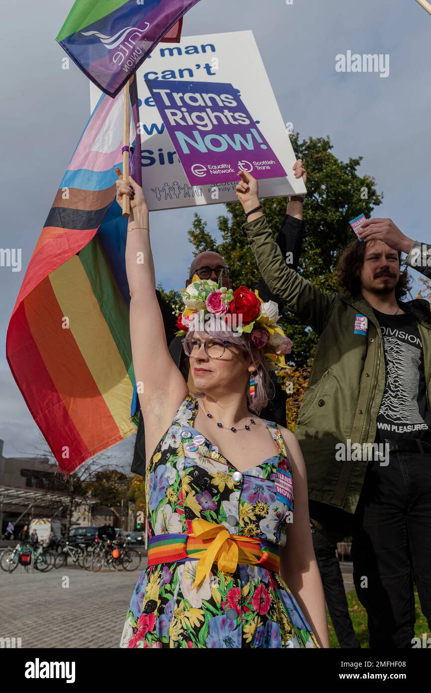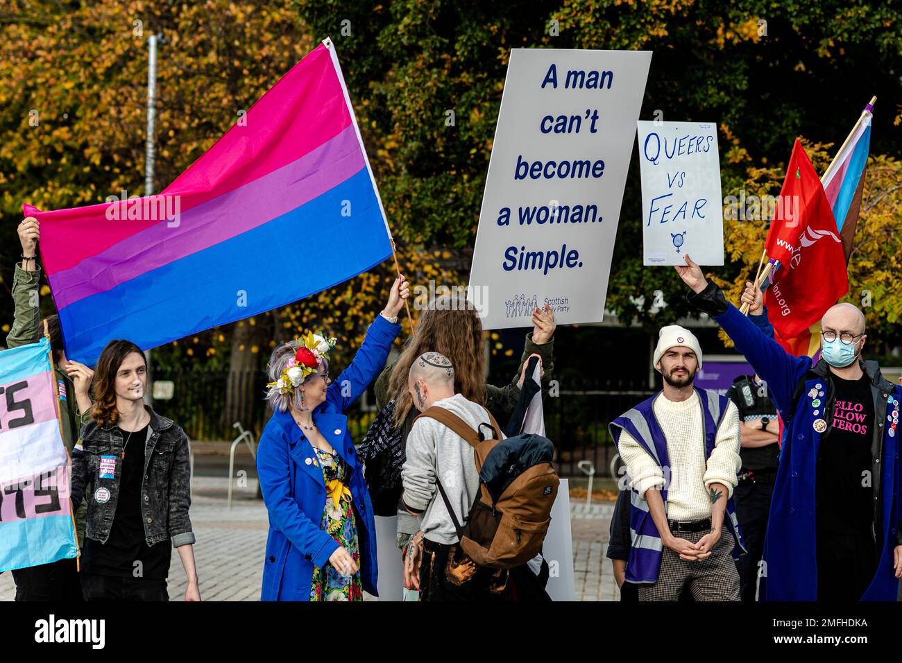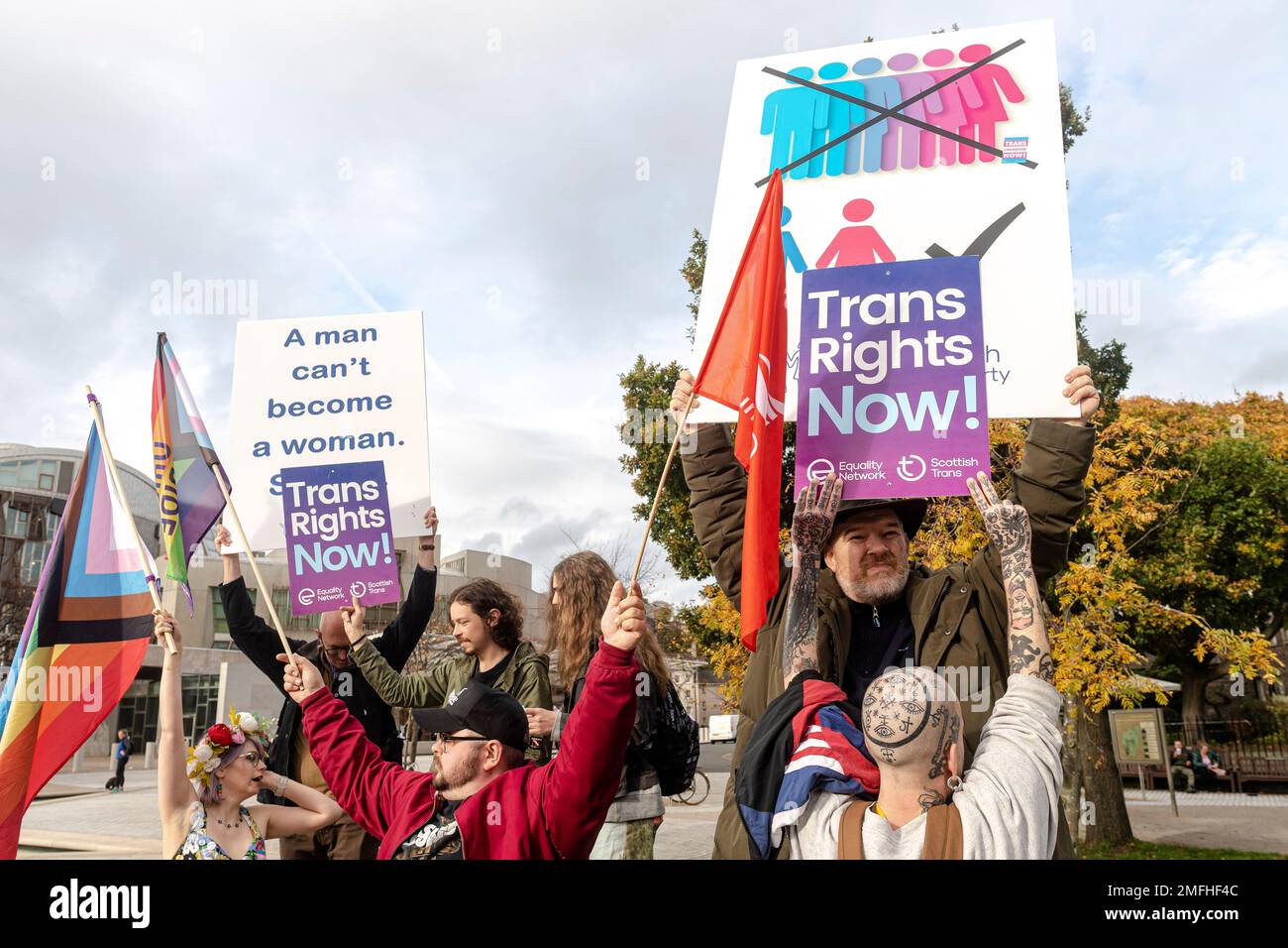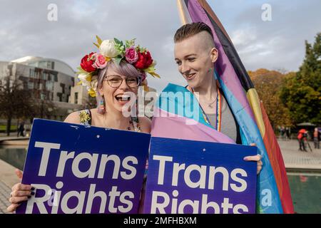 Pro trans campaigners gather outside Scottish Parliament as the The