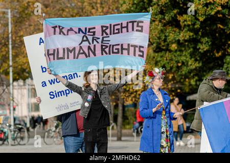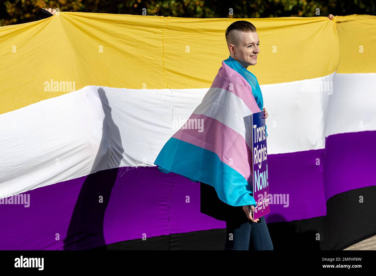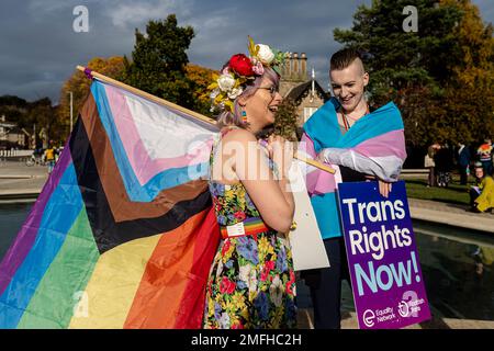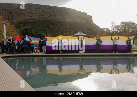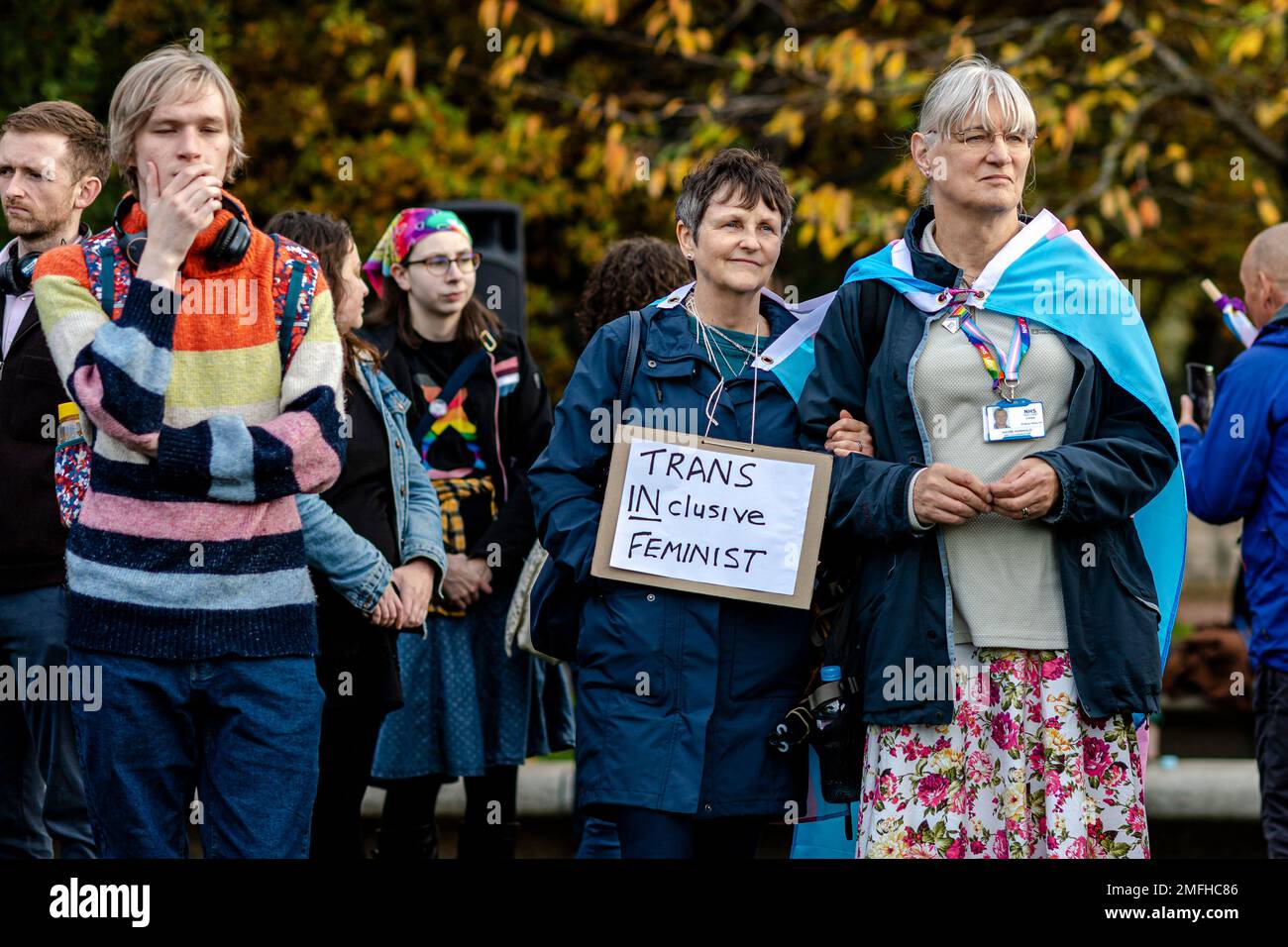 Pro trans campaigners gather outside Scottish Parliament as the The
