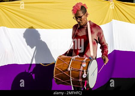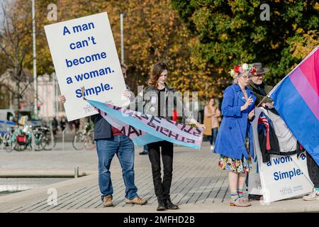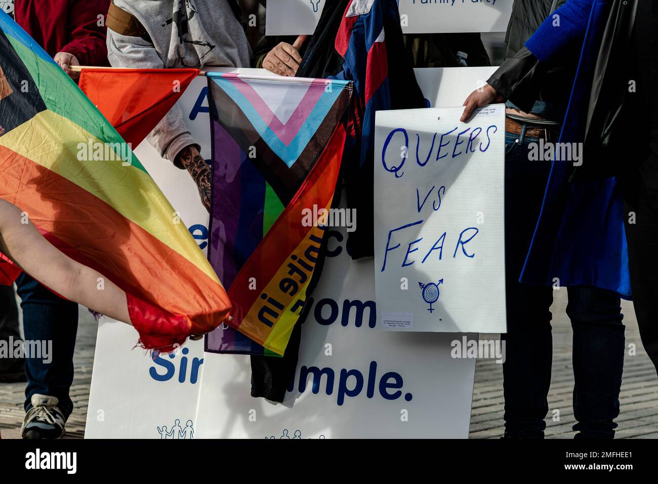 Anti trans bill protesters are covered up by Pro trans campaigners