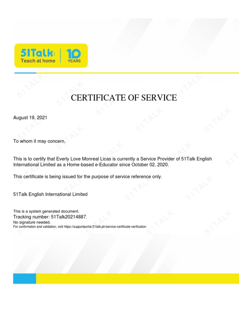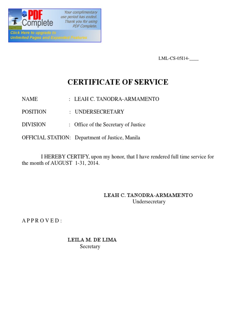 Certificate of Service PDF Career Growth