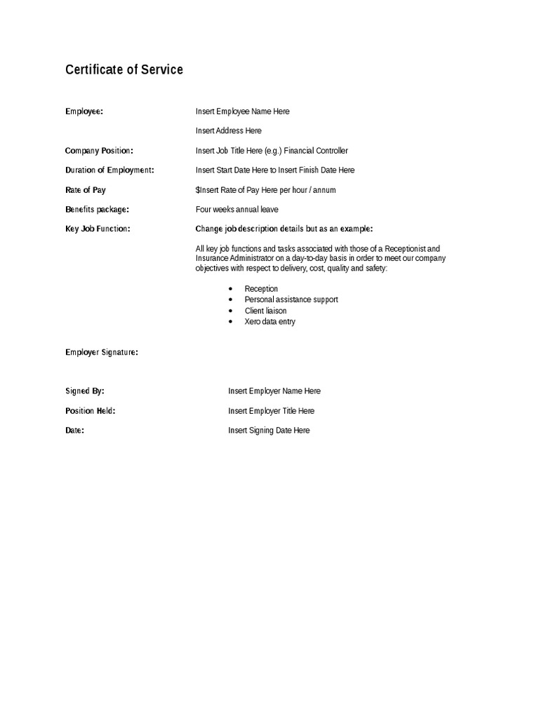 Certificate Of Service Template Australia