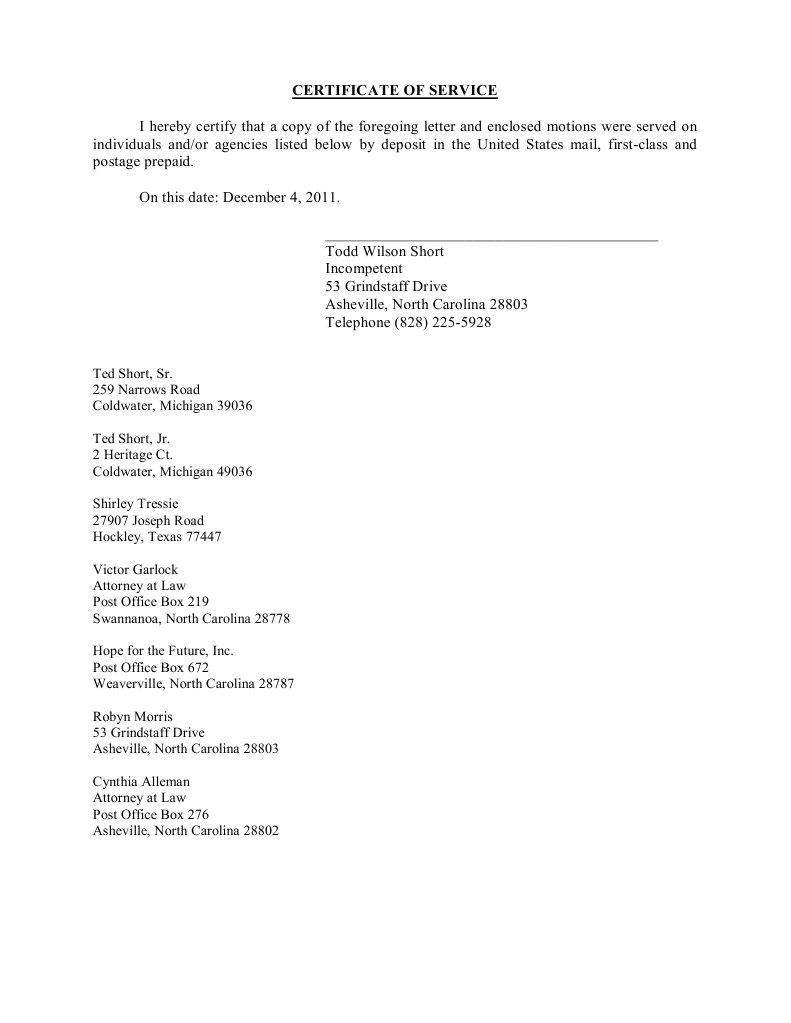 Certificate Of Service