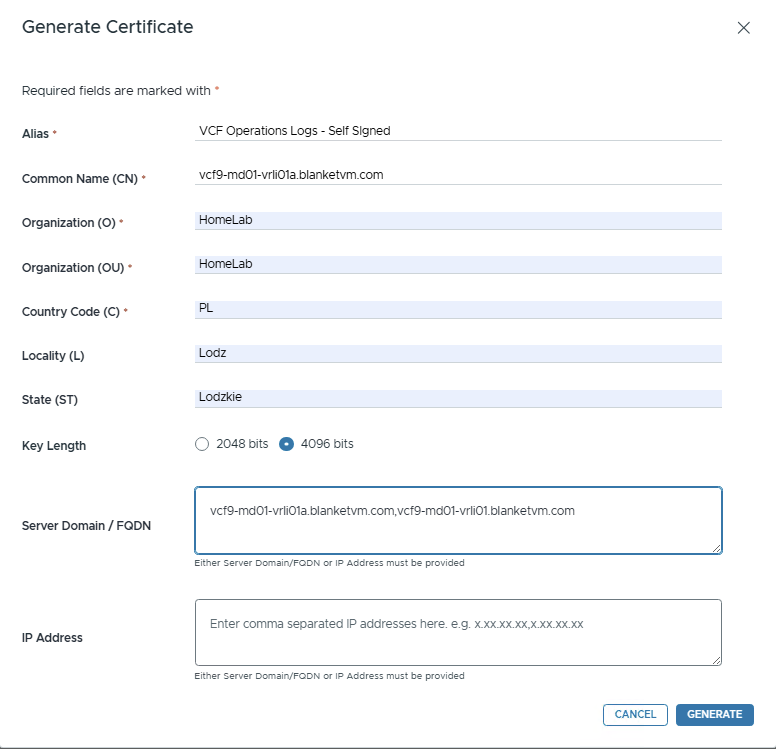 VCF 9 Deployment PART3: VCF Operation for Logs deployment BlanketVM