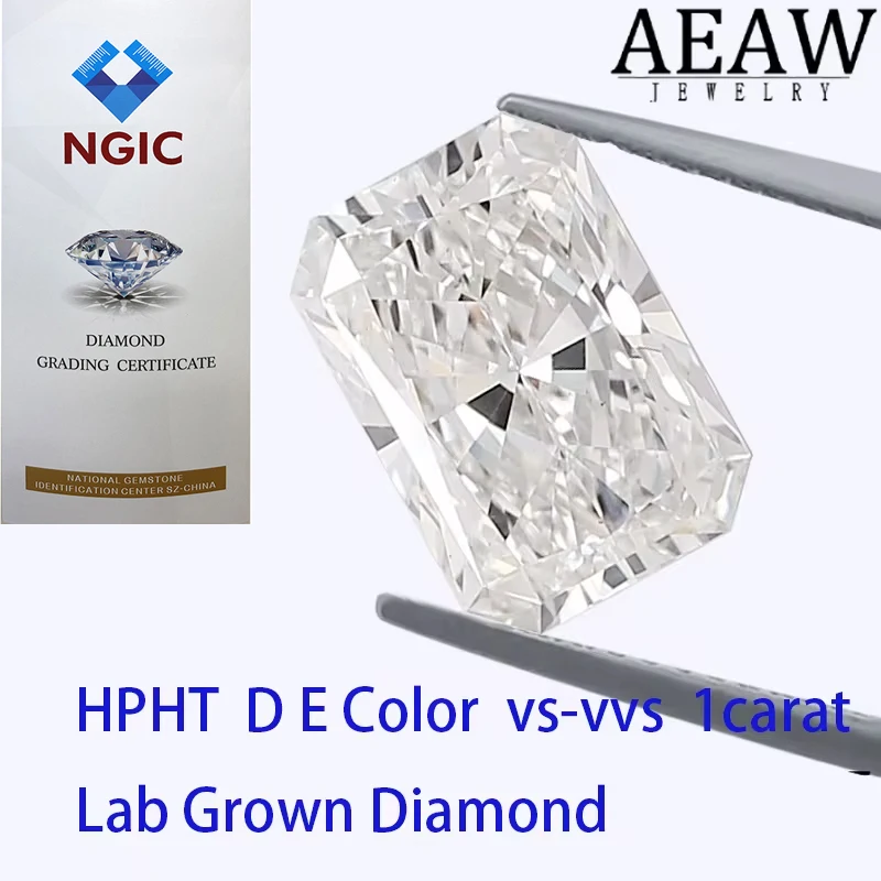 HPHT diamond DE white color 1ct vs vvs clarity radiant shape Cut NGIC