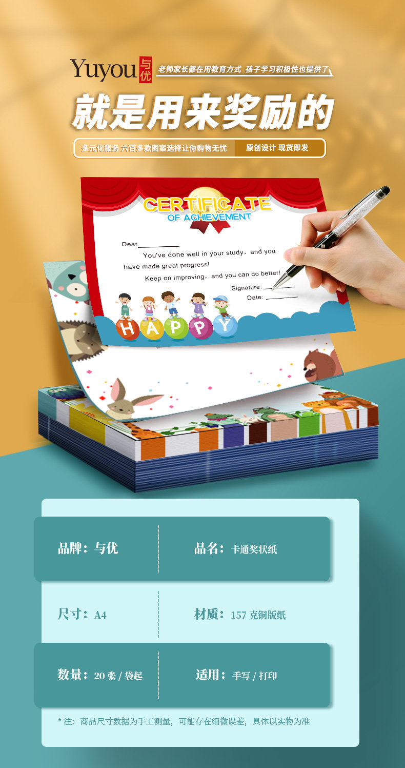 Yuyou A5/A4 Commendation Letters Primary School Student Awards