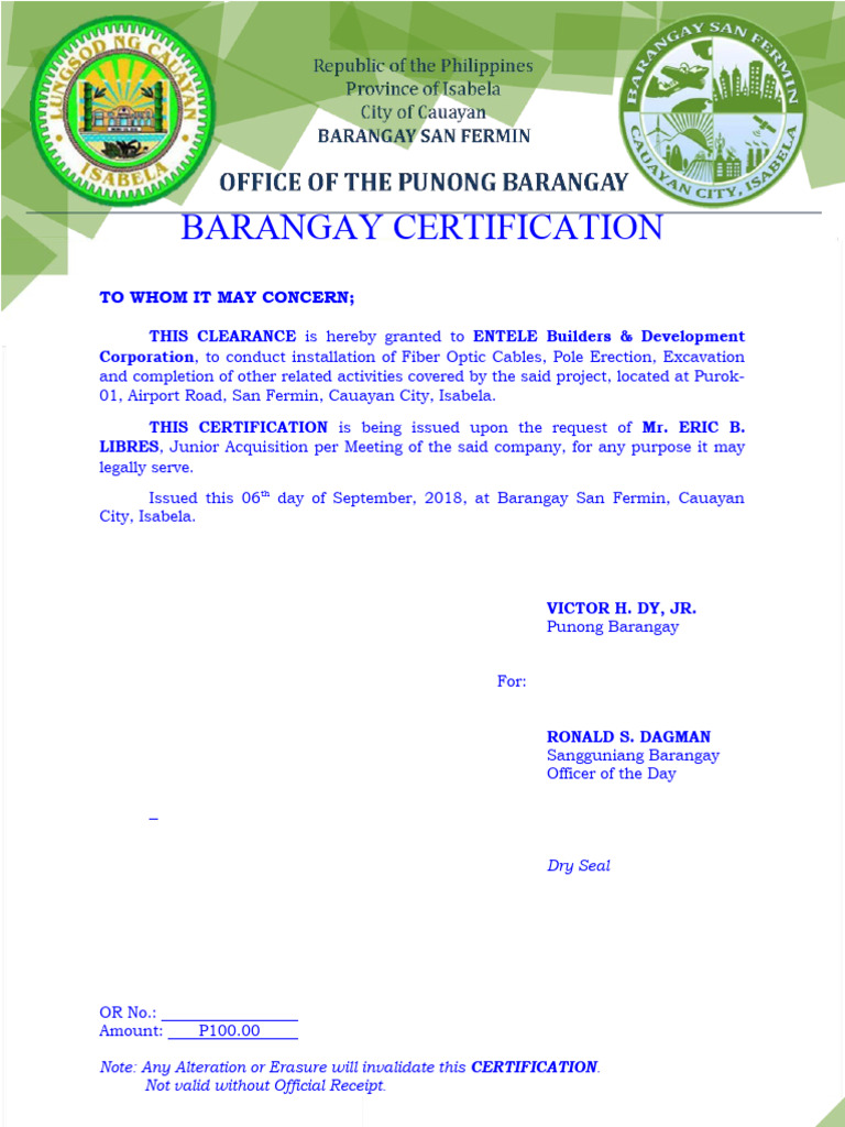 Barangay Certificate And Barangay Clearance Editable Fillable