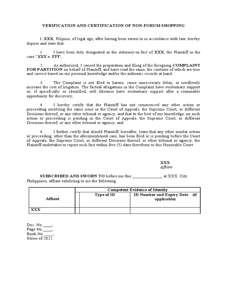 VERIFICATION AND CERTIFICATION OF NON FORUM SHOPPING PDF