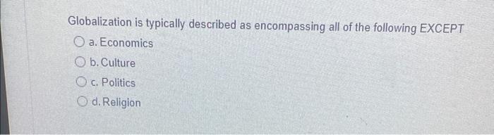 Globalization is typically described as encompassing Chegg com