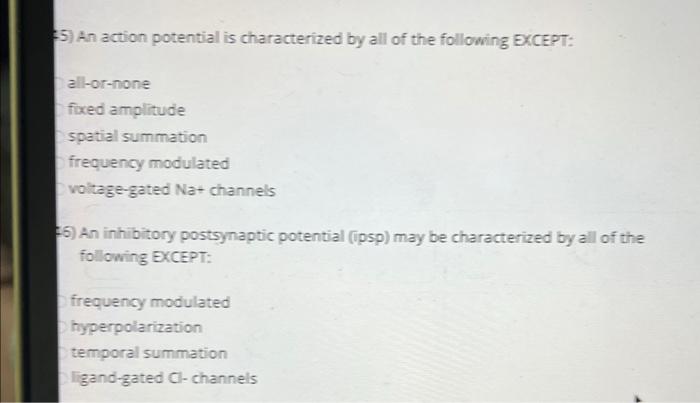 Solved 5) An action potential is characterized by all of the Chegg com