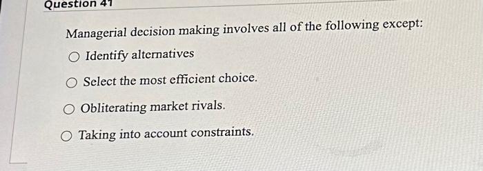 Solved Managerial decision making involves all of the Chegg com