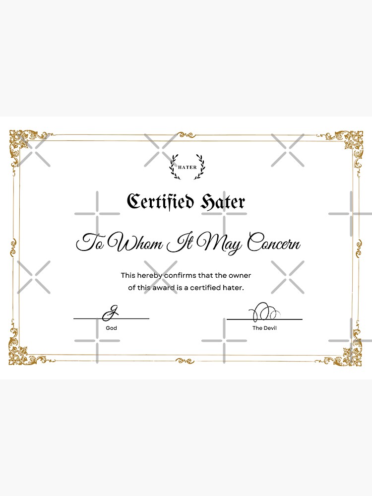 Here are some of the images for Certified Hater Certificate that we found in our website database.