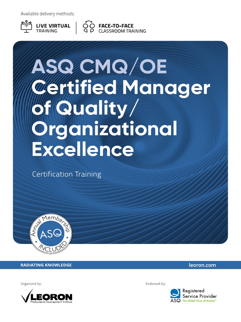 Certified Manager of Quality (CMQ/OE) Exam Preparation Online Training