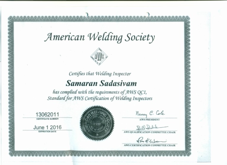Welding Supervisor Certificate PDF