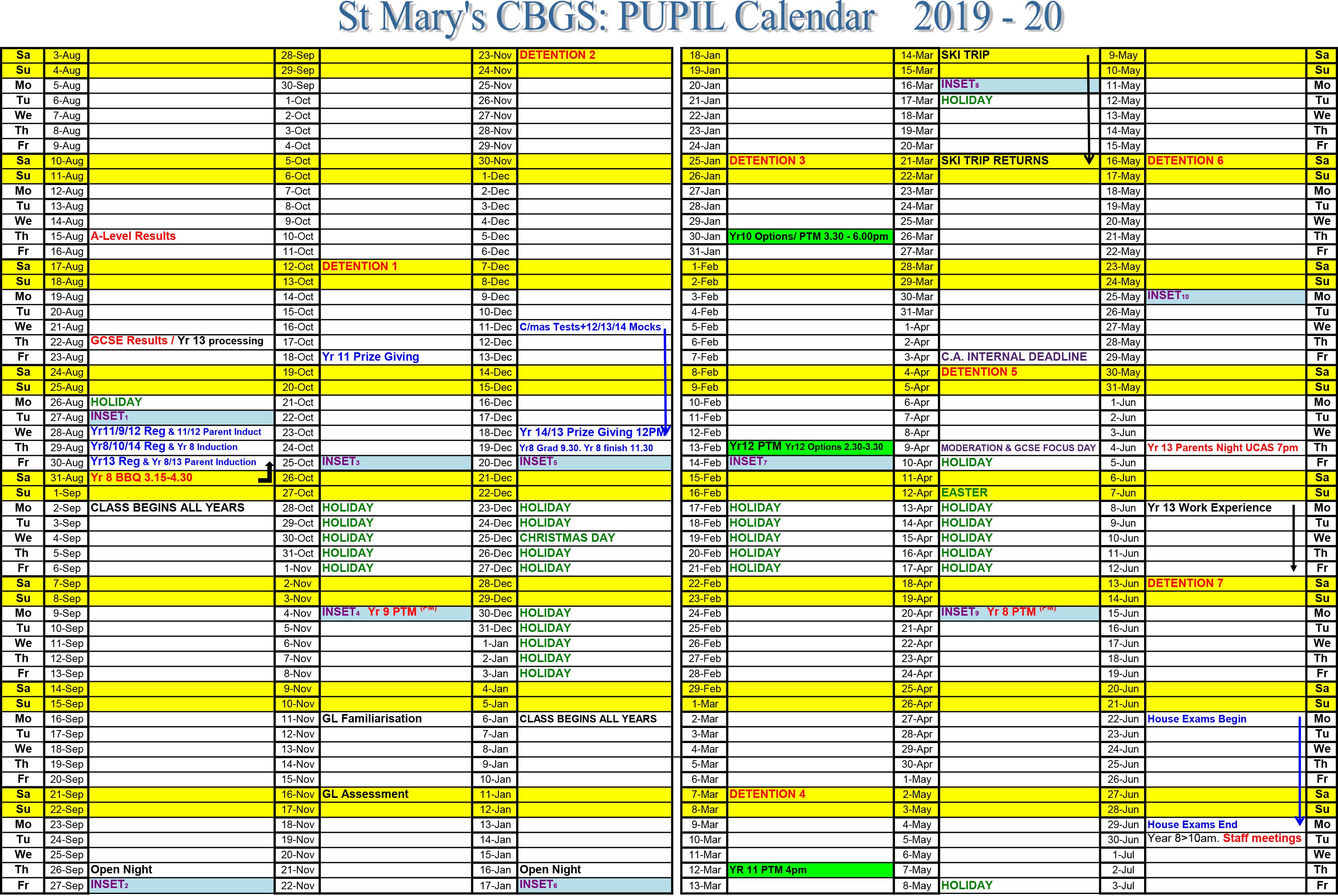 School Calendar St Mary s CBGS Belfast