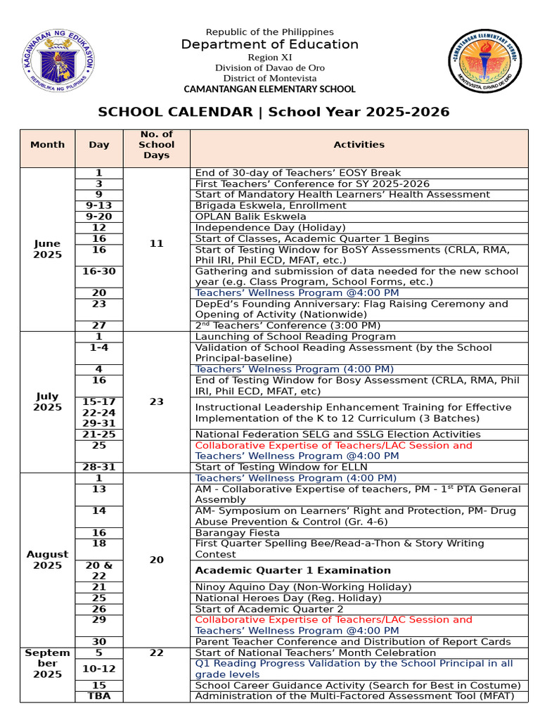 CES school Calendar 2025 2026 A4 SIZE PDF Philippines Observances