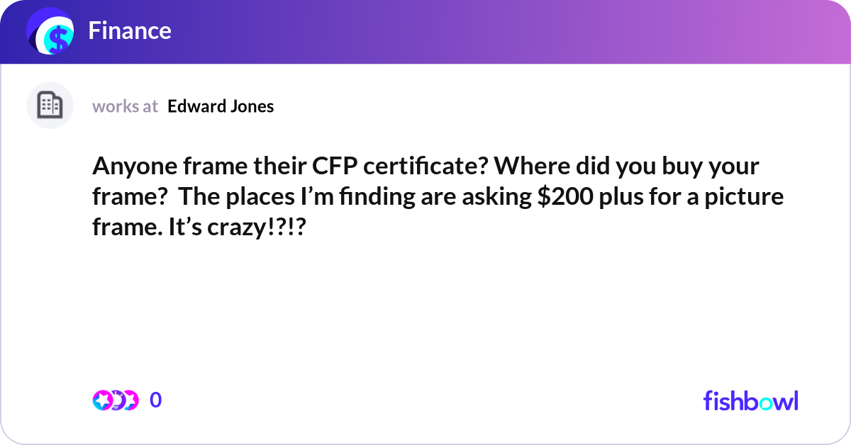Anyone frame their CFP certificate? Where did you Fishbowl