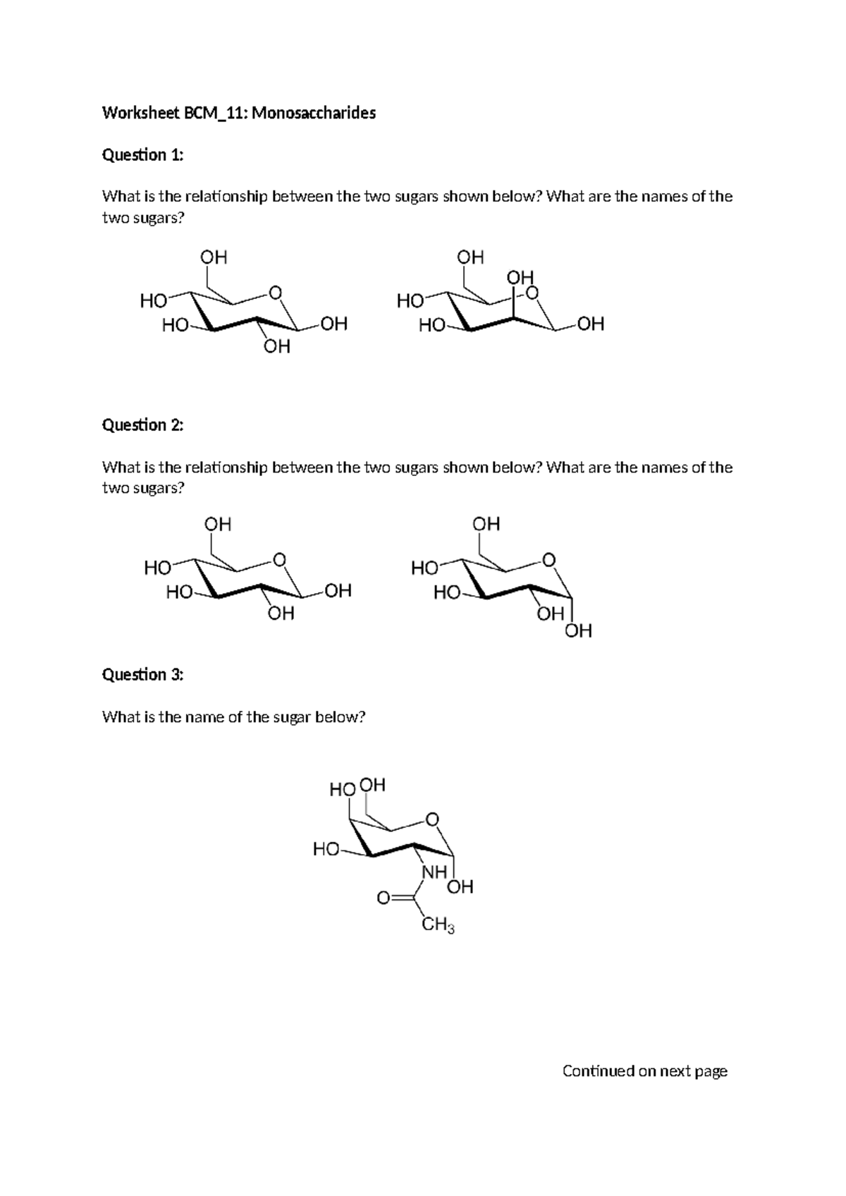 BCM 11 Worksheet: Monosaccharides Chair Conformation Concepts Studocu