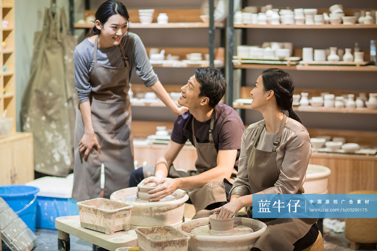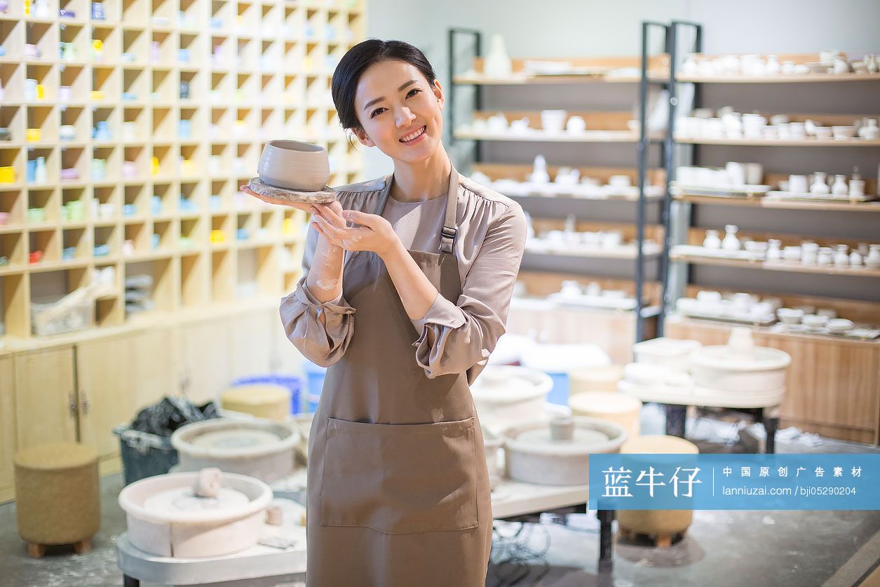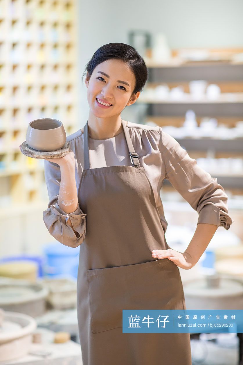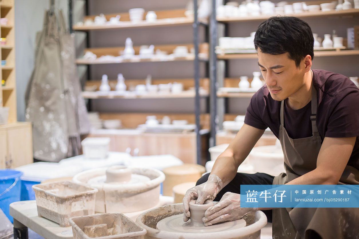 年轻陶艺师制作手工陶艺 蓝牛仔影像 中国原创广告影像素材