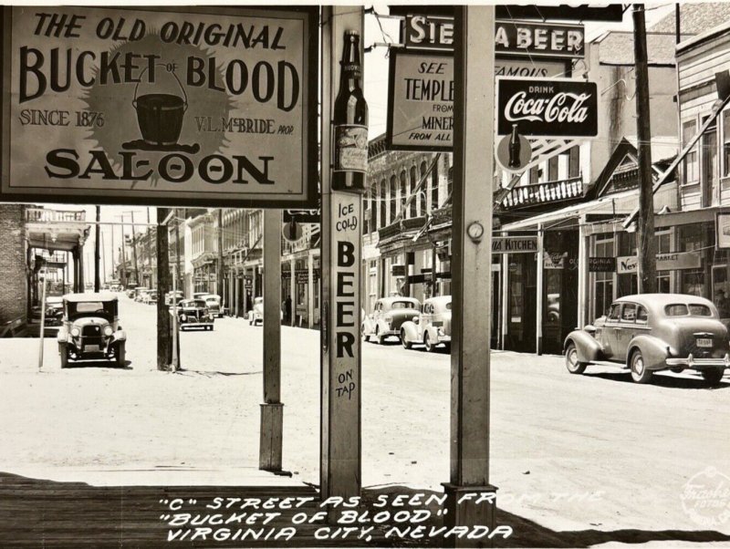 Coca Cola Bucket of Blood Saloon Virginia City NV Budweiser Sign 1940s