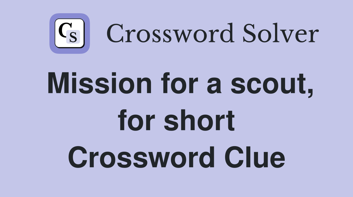 Mission for a scout for short Crossword Clue Answers Crossword Solver