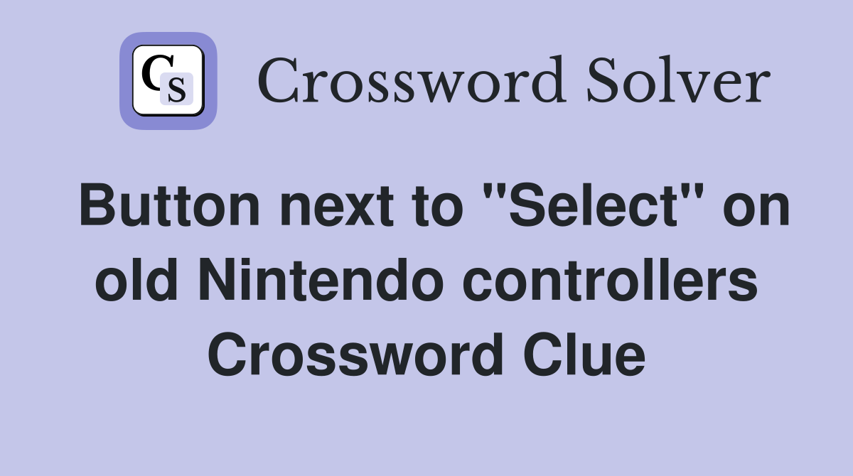 Button next to quot Select quot on old Nintendo controllers Crossword Clue