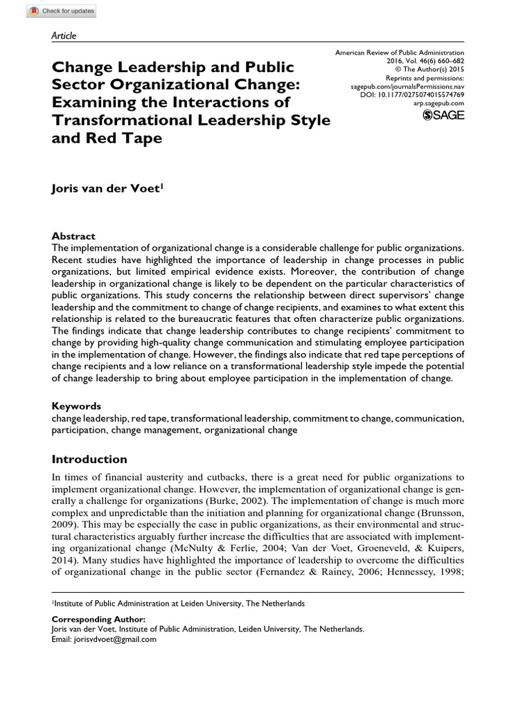 van der voet 2015 change leadership and public sector organizational