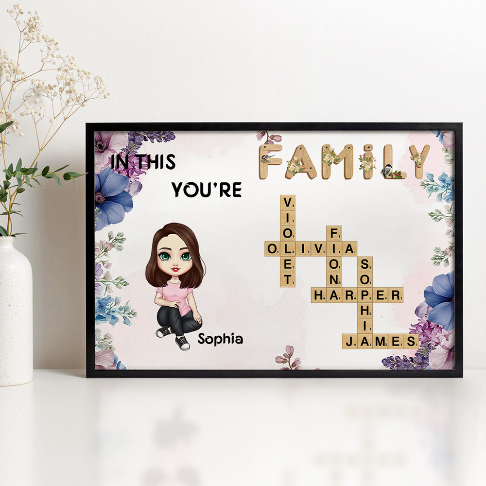 Personalized Family Crossword Puzzle Art Canvas Poster Framed Frameless