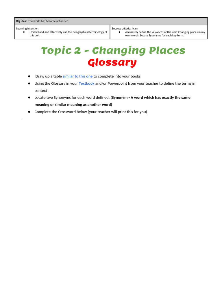 Changing Places Key Terms Crossword Puzzle