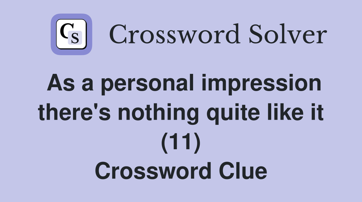 As a personal impression there #39 s nothing quite like it (11) Crossword