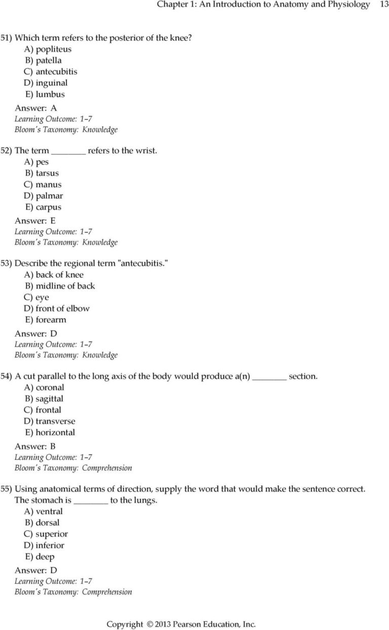 Chapter 1 Introduction To Anatomy And Physiology Worksheet Answers