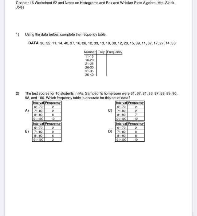 Solved Chapter 16 Worksheet #2 and Notes on Histograms and Chegg com