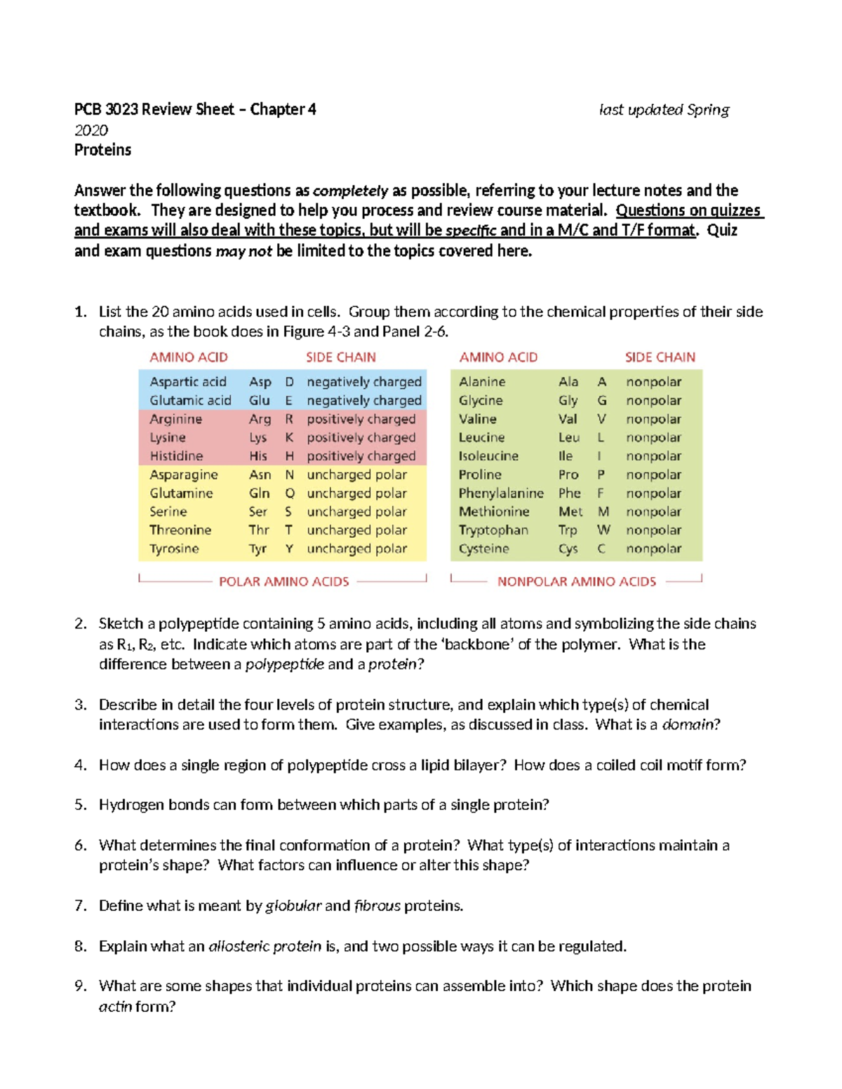 Review Chapter 4 Spring 2020 PCB 3023 Review Sheet Chapter 4 last