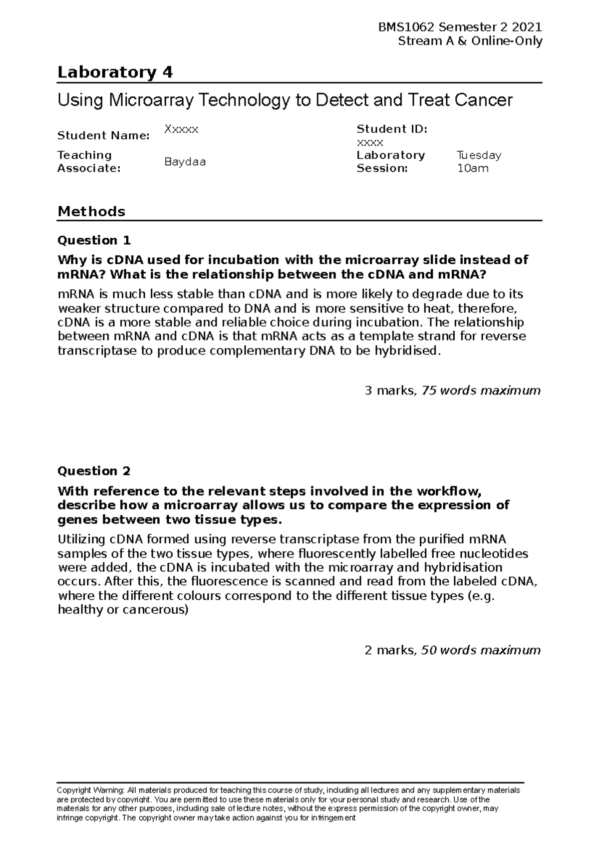 Lab 4 Post Laboratory Worksheet BMS1062 Student Stream A Online