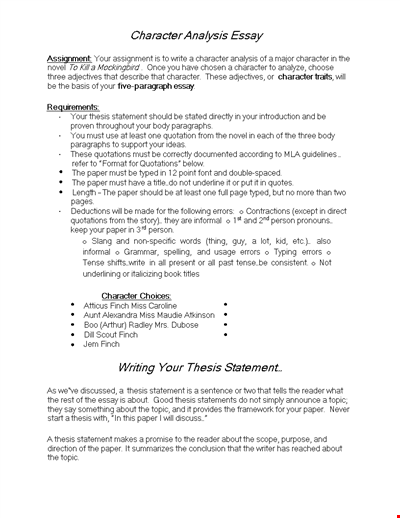 Character Analysis Essay Guideline Templates at allbusinesstemplates com
