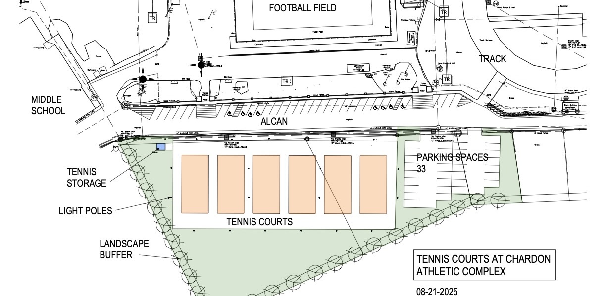 Ball Rolling on New Chardon Schools Tennis Courts Geauga County Maple