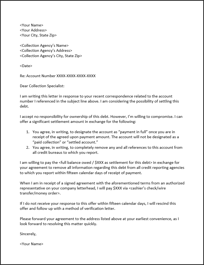 Collection Charge Off Removal Templates prntbl