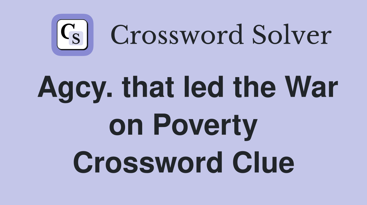 Agcy that led the War on Poverty Crossword Clue Answers Crossword