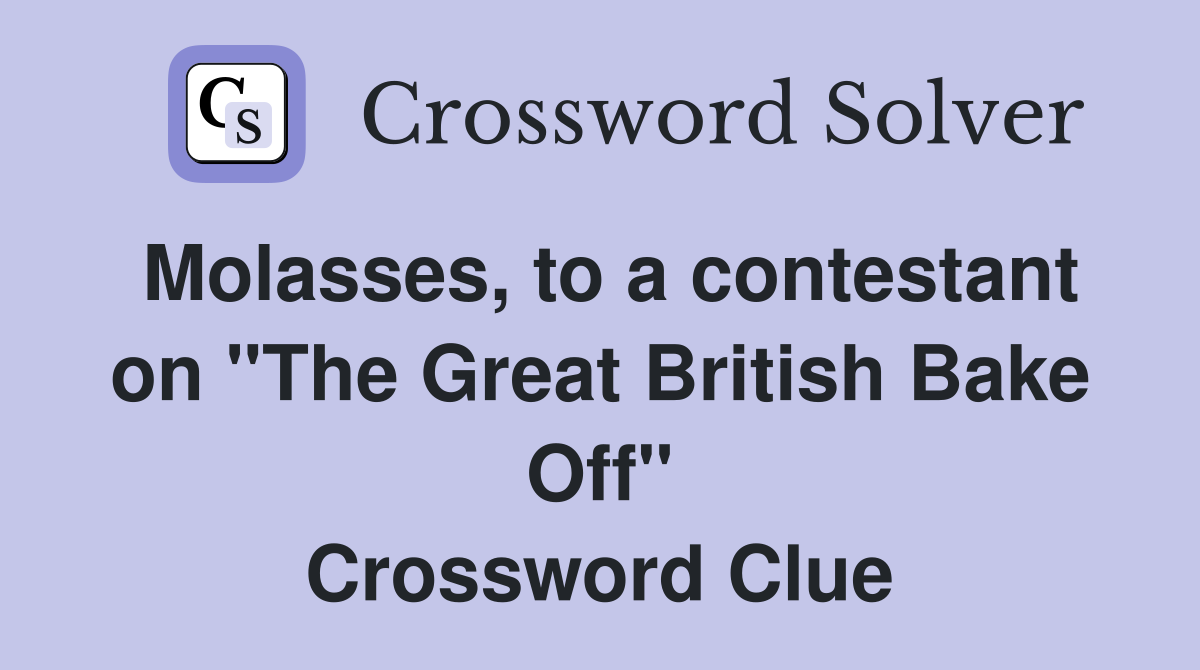Molasses to a contestant on quot The Great British Bake Off quot Crossword
