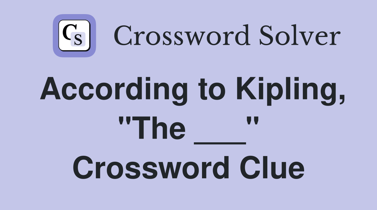 According to Kipling quot The quot Crossword Clue Answers Crossword Solver