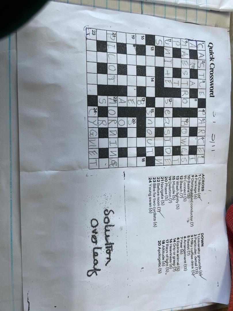 Quick Crossword ACROSS 1 Château (6) 4 StudyX