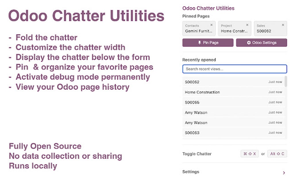 Odoo Chatter Utilities สำหรับ Google Chrome ส่วนขยาย ดาวน์โหลด