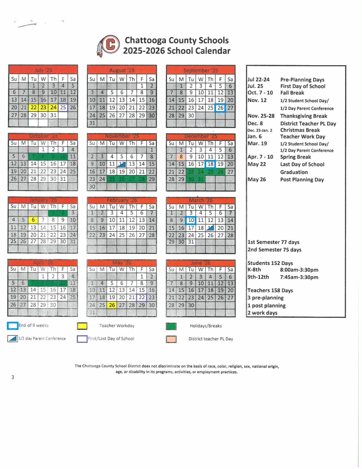 Chattooga County Schools Calendar