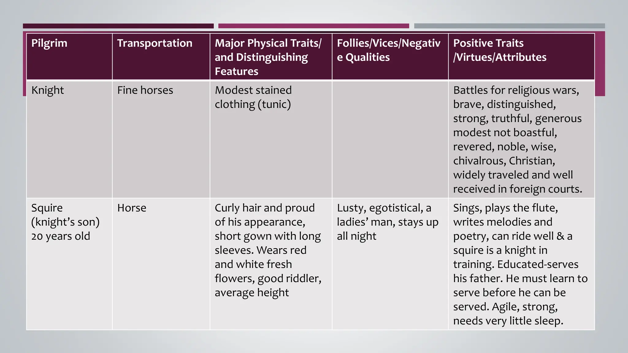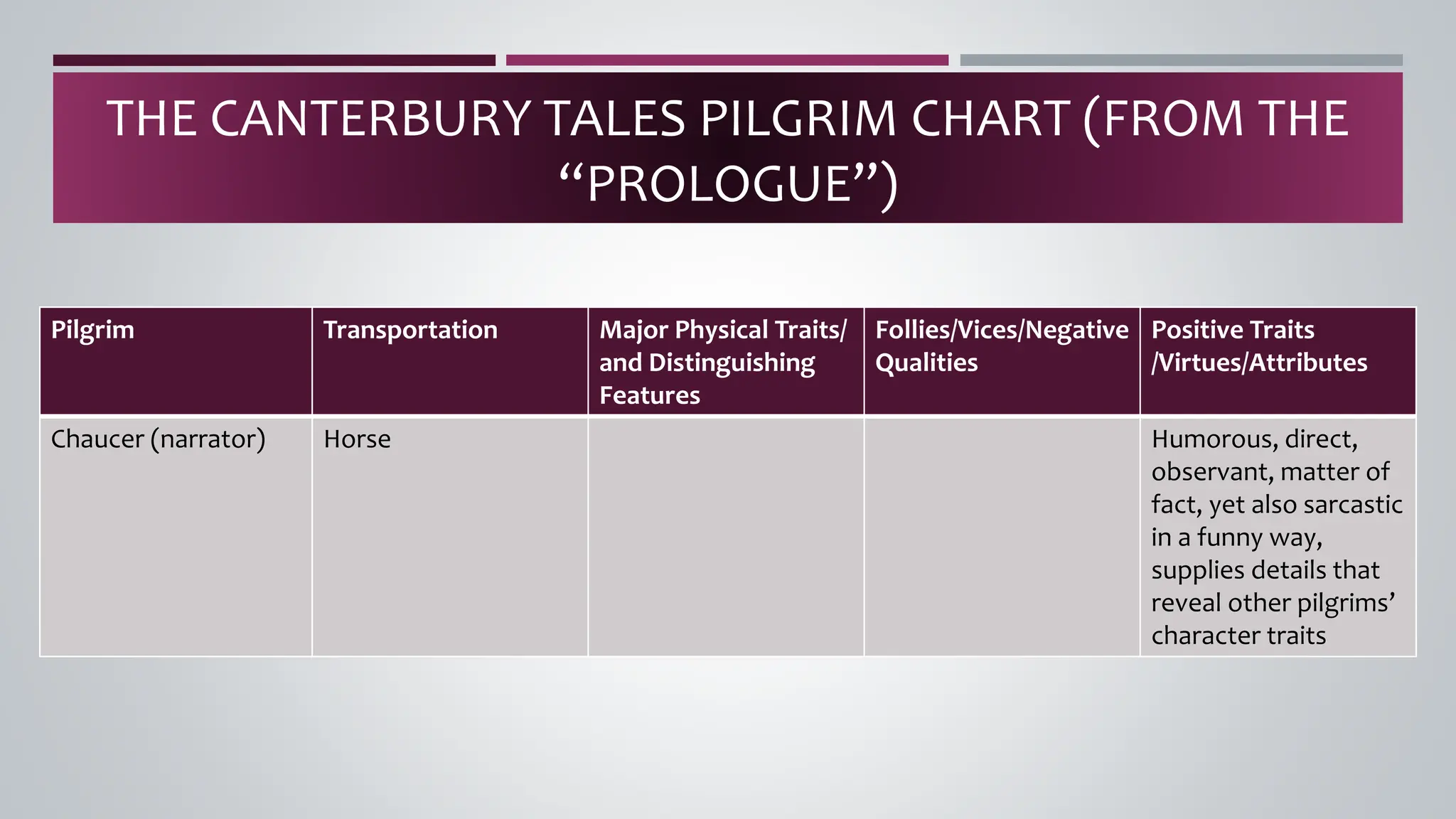 Pilgrim Chart General Prologue pptxChaucer #39 s Canterbury Tales PPTX