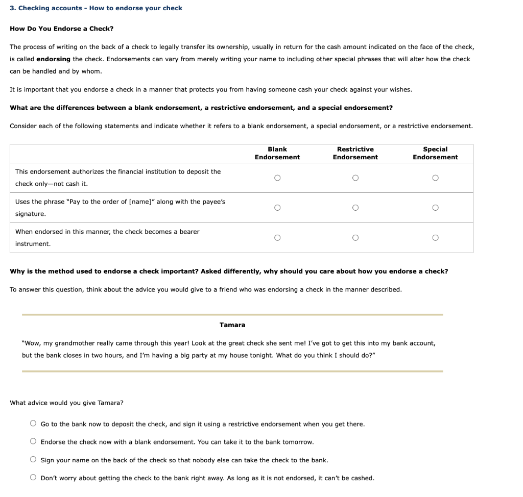 Solved 3 Checking accounts How to endorse your check How Chegg com