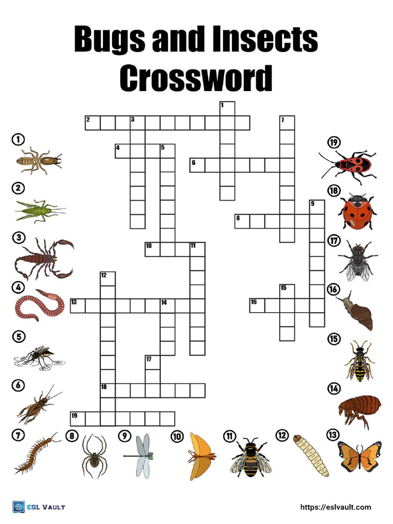 کاربرگ Critter Crossword: Bugs مهدآموز