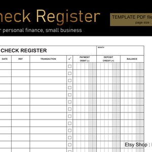 Checkbook Register Printable Check Register PDF Money Tracker Money