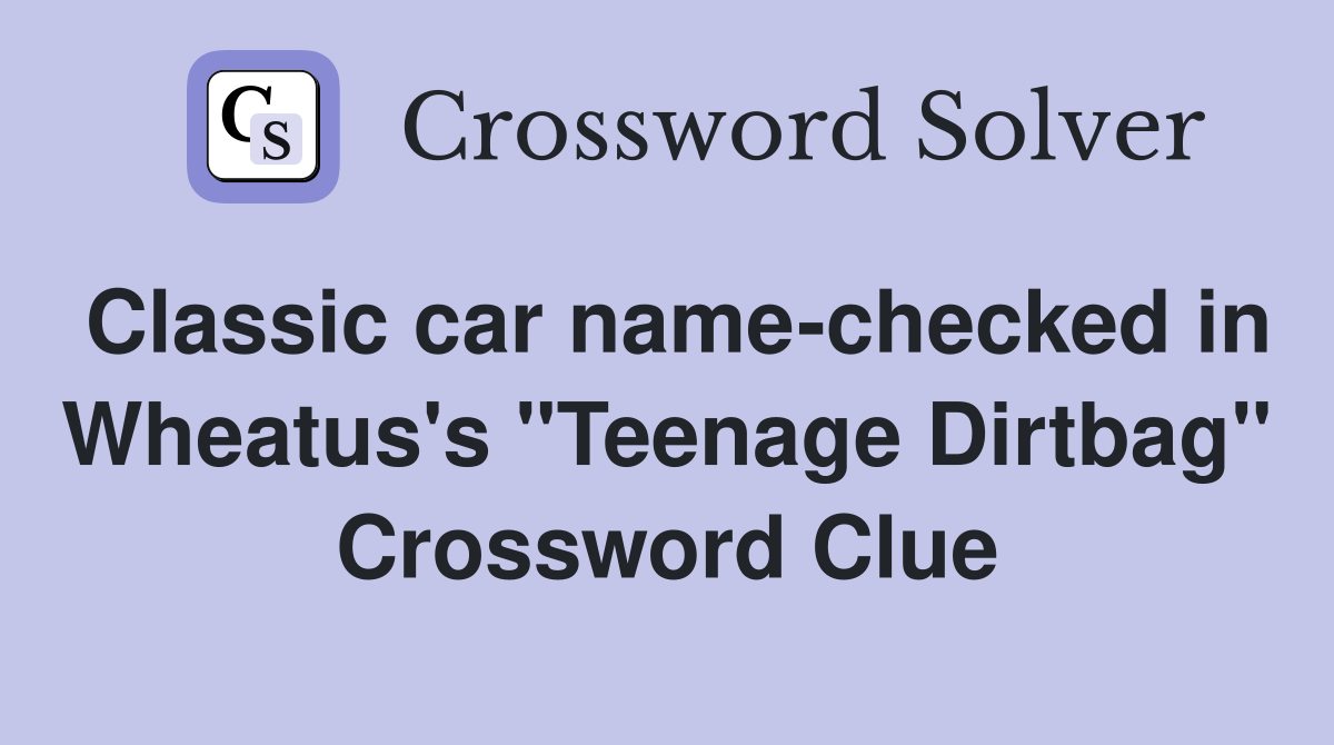 Classic car name checked in Wheatus #39 s quot Teenage Dirtbag quot Crossword