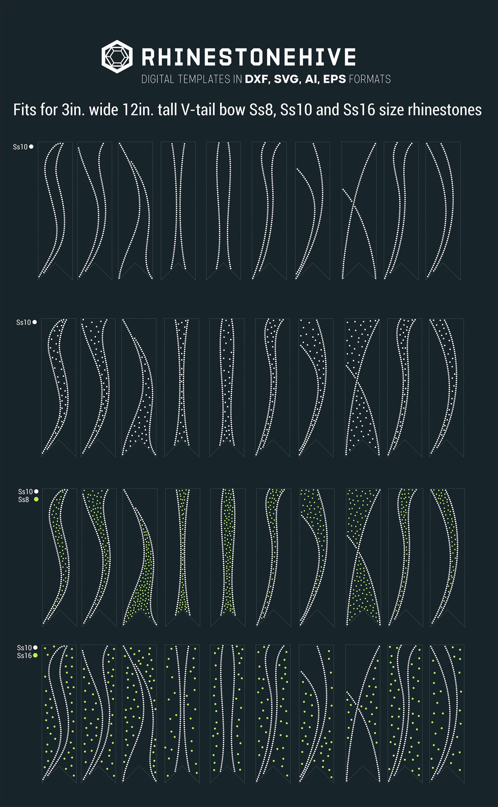 40 Cheer Bow Rhinestone Templates Designs Ss8 Ss10 and Ss16 Size
