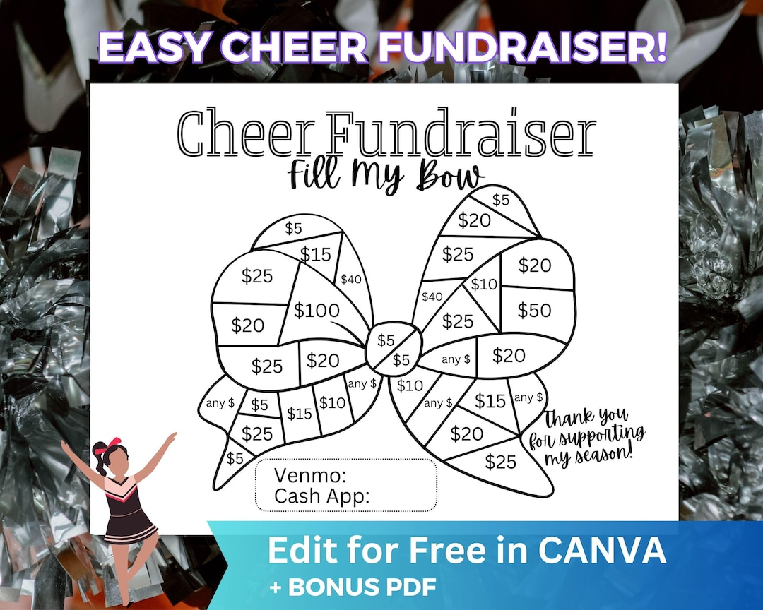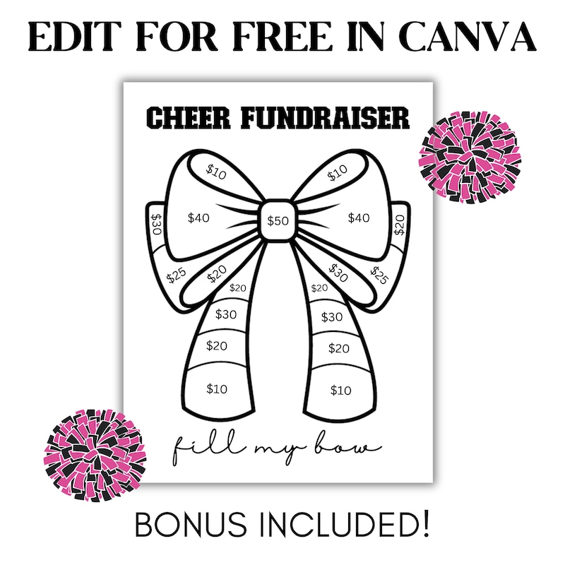 Fill My Bow Printable Cheer Fundraiser Canva Template Cheerleading