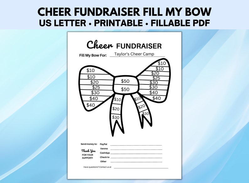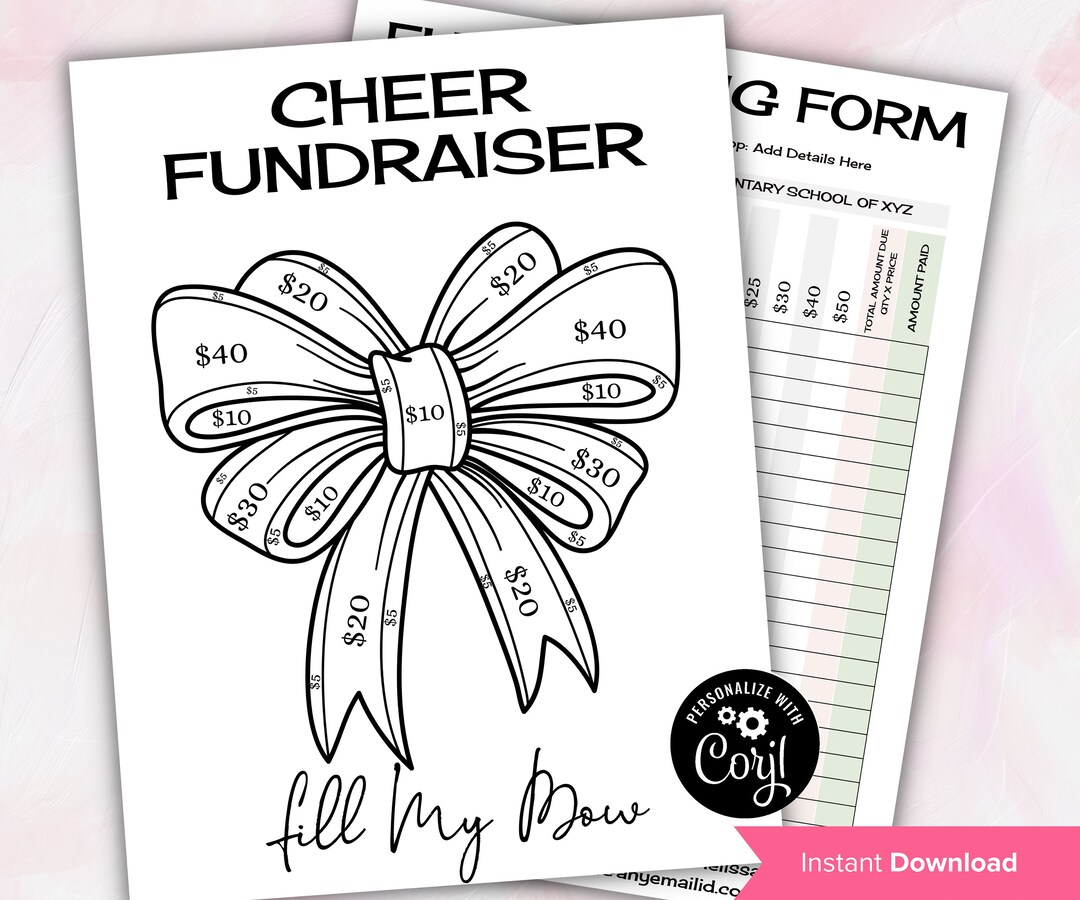 Fill My Bow Cheer Fundraiser Printable Cheerleading Team Fundraising